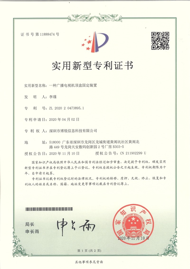 实用新型专利证书